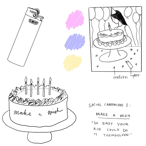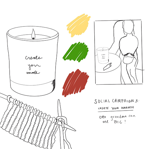 This campaign is centered around the classic BIC lighter. BIC lighters are typically connected with the use of drugs, so the campaign is geared towards families as a necessary household object in order to subvert this connotation. It is reminiscent of classic 1950s advertisements to draw on traditional family values.